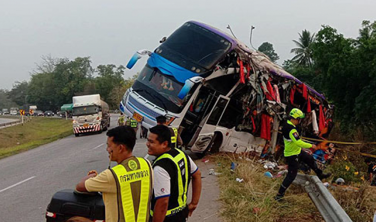 คณะครูนำนักเรียนมัธยมจากหนองบัวลำภูไปทัศนศึกษาที่อ่าวคุ้งกระเบน ถึงปราจีนบุรี คนขับหักหลบรถหกล้อ พุ่งชนราวกั้นไหล่ทางก่อนพลิกคว่ำเทกระจาดครู-นักเรียน 40 คน เสียชีวิต 1 ศพ บาดเจ็บระนาว
