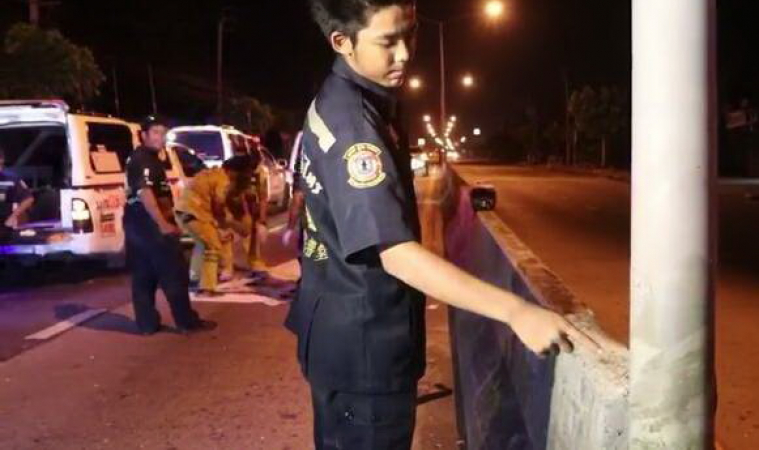 เมื่อเวลา 03.30 น. วันที่ 30 ตุลาคมนี้ พ.ต.ท.ทนงศักดิ์ ลอยหา สว. (สอบสวน) สน.มีนบุรี รับแจ้งเหตุรถจักรยานยนต์พุ่งชนเสาไฟส่องสว่าง คนขี่เสียชีวิต เหตุเกิดบนถนนราษฎร์อุทิศ แขวงแสนแสบ เขตมีนบุรี กรุงเทพฯ จึงรุดไปตรวจสอบพร้อมเจ้าหน้าที่มูลนิธิป่อเต็กตึ๊ง และมูลนิธิร่มไทรมีนบุรี ที่เกิดเหตุอยู่บริเวณปากซอยราษฎร์อุทิศ 54 มุ่งหน้าถนนสุวินทวงศ์ ลักษณะเป็นถนน 3 เลน มีเกาะกลางถนนเป็นแท่งแบริเออร์ พบรอยชนแท่งแบริเออร์และที่เสาไฟส่องสว่าง ก่อนจะพบศพเป็นชายอายุประมาณ 30-35 ปี สวมเสื้อยืดสีดำ กางเกงยีนส์ขายาว สภาพศพ หัวขาด มีบาดแผลทั่วร่าง บริเวณลำตัวมีแผลขนาดใหญ่จนลำไส้ไหลทะลักออกมา ใกล้กันพบหมวกนิรภัยแบบเต็มใบสีดำ จึงรวบรวมไว้เป็นหลักฐาน จากการตรวจสอบไม่พบเอกสารติดตัว ห่างออกไป 500 เมตร พบรถจักรยานยนต์ยี่ห้อคาวาซากิ รุ่นนินจา สีเขียว ขนาดเครื่องยนต์ 1000 ซีซี หมายเลขทะเบียน 1 กณ 9998 กรุงเทพมหานคร ล้มคว่ำอยู่เลนซ้ายสุด