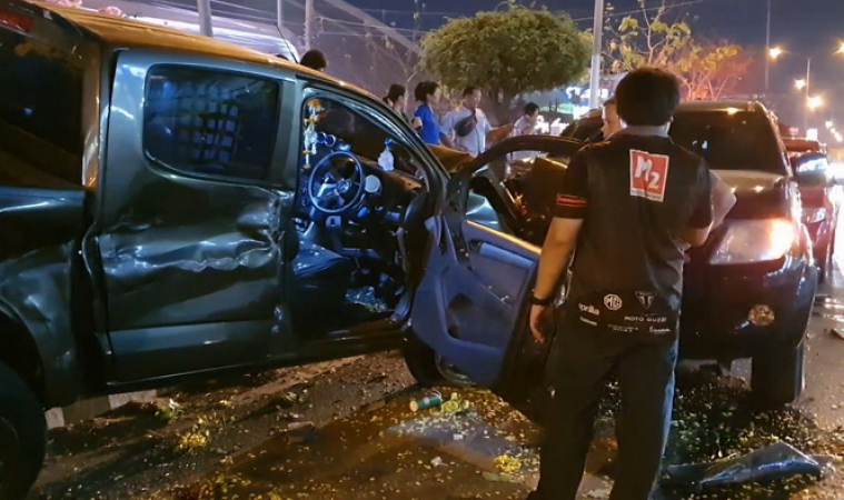 หนุ่มซิ่งปิกอัพฝ่าสายฝนมุ่งหน้าเข้ากรุงเทพฯ เสียหลักพุ่งข้ามเกาะชนประสานงากับรถเก๋งที่วิ่งสวนทางมา ผลตาย 3 ศพ รวมทั้งเจ้าหน้าที่บรรเทาสาธารณภัย สาหัสอีก 4 คน