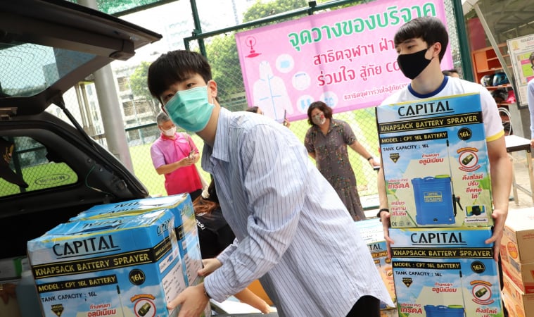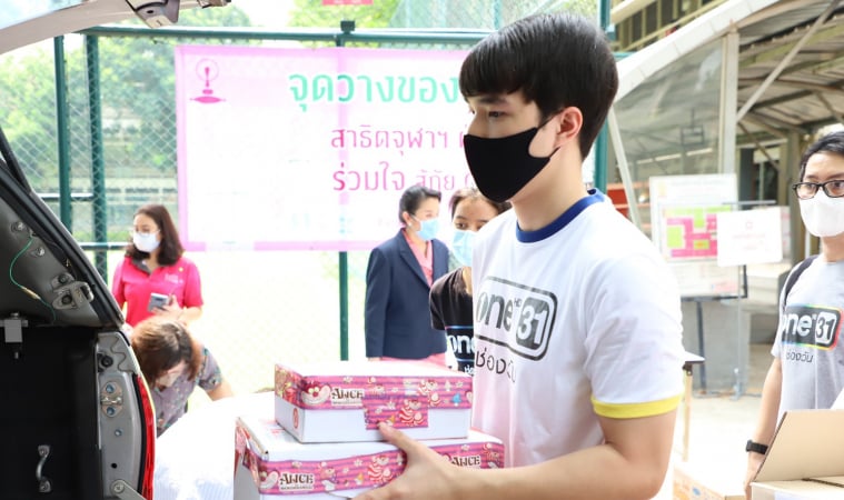 พร้อมด้วย เป๊ะ-กนิษฐ์ สารสิน นายกสามาคมนักเรียนเก่าสาธิตจุฬาฯ เป็นผู้ส่งมอบอุปกรณ์ และของใช้จำเป็นดังกล่าว ซึ่งได้รับบริจาคมาจากเหล่านักเรียน, ผู้ปกครอง ส่งต่อให้กับโครงการ วันสร้างสุข สู้ภัยโควิด-19 ช่องวัน31 เพื่อส่งต่อความช่วยเหลือไปยังหน่วยงานต่างๆ รวมทั้งประชาชนที่ได้รับผลกระทบจากวิกฤตโควิด-19 ทั่วประเทศ โดยงานจัดขึ้น ณ โรงเรียนสาธิตจุฬาลงกรณ์มหาวิทยาลัย ฝ่ายมัธยม เมื่อเช้าวานก่อน