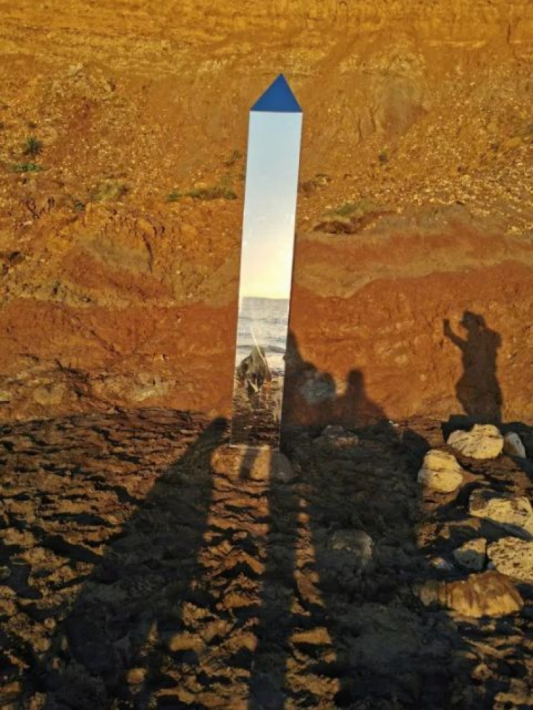 เสาโลหะสามเหลี่ยมคล้ายกับที่พบในรัฐยูทาห์ของสหรัฐและบนยอดเขาในโรมาเนียมาปรากฏบนชายหาดของเกาะไวต์ทางใต้ของอังกฤษเมื่อวันอาทิตย์