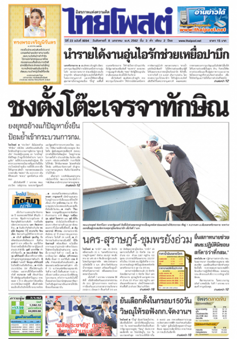 สมเด็จพระเจ้าอยู่หัวมีพระมหากรุณาธิคุณให้นำรายได้ส่วนหนึ่งจากงานอุ่นไอรัก คลายความหนาวฯ ช่วยเหลือผู้ประสบภัยพายุปาบึก พร้อมทรงรับผู้ประสบภัยที่เสียชีวิตไว้ในพระราชานุเคราะห์ และทรงให้ติดตามฟื้นฟูสุขภาพกายใจราษฎรต่อเนื่อง "บิ๊กตู่" ลงพื้นที่ จ.นครศรีธรรมราช ให้กำลังใจชาวบ้านอย่าท้อ ลั่นรัฐบาลช่วยเหลือเต็มที่ "ธนาคาร" ออกมาตรการดูแลลูกค้าเพิ่มเติม "ทษช." ซัดรัฐใช้งบฉุกเฉินหาเสียงจนหมด ต้องตั้งโต๊ะรับบริจาค