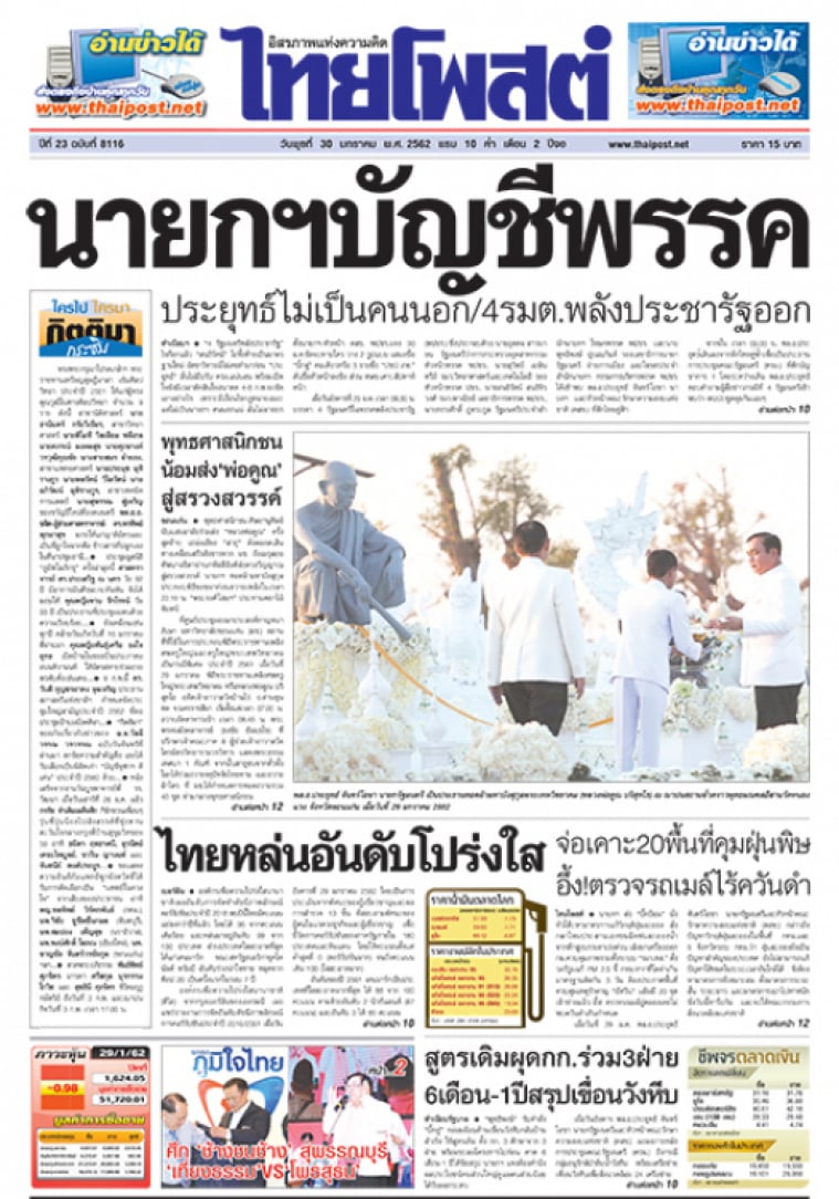 นายกฯ ส่ง "บิ๊กป้อม" นั่งหัวโต๊ะหามาตรการแก้วิกฤติฝุ่นละออง สั่งกลาโหมประสานเอกชนฉีดพ่นละอองน้ำจากตึกสูงบรรเทาเร่งด่วน เล็งยกเครื่องออก กม.ควบคุมภาพรวมทั้งระบบ "รมว.ทส." ตั้งวอร์รูมแก้ PM 2.5 จี้ กทม.หากที่ใดค่าเกินมาตรฐานติดกัน 3 วัน ต้องประกาศพื้นที่ควบคุมเหตุรำคาญ "อัศวิน" แย้มมี 20 จุดเข้าข่ายแล้ว อึ้ง! ตรวจรถเมล์อู่คลองเตยไม่พบควันดำเกินกำหนด