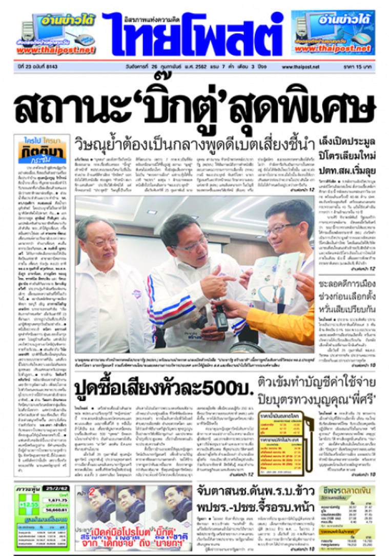 เครือข่ายเพื่อแม้วเดินสายขย่ม พปชร.เอาเปรียบทุกวิธี "หญิงหน่อย" บี้ กกต.สอบคลิปเสียงแจกบัตรคนจนแลกคะแนนเสียง แฉบางพื้นที่ให้ 6 หมื่นใบถ้าได้เป็น ส.ส. เพื่อชาติปูดภาคเหนือตอนบนซื้อเสียงหัวละ 500 "อุตตม" ปัดลอกนโยบายจำนำข้าว ยันทำแบบเกษตรยั่งยืนดูแลครบวงจร "มาร์ค" เผยต้น มี.ค.แจงที่มางบทำนโยบาย