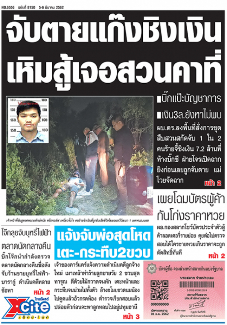 บิ๊กแป๊ะบัญชาการเงิน3ล.ยังหาไม่พบผบ.ตร.ลงพื้นที่สั่งการชุดสืบสวนสกัดจับ 1 ใน 2 คนร้ายจี้ชิงเงิน 7.2 ล้านที่ห้างบิ๊กซี ฝ่ายโจรเปิดฉากยิงก่อนเลยถูกจับตาย แม่โวยจัดฉาก