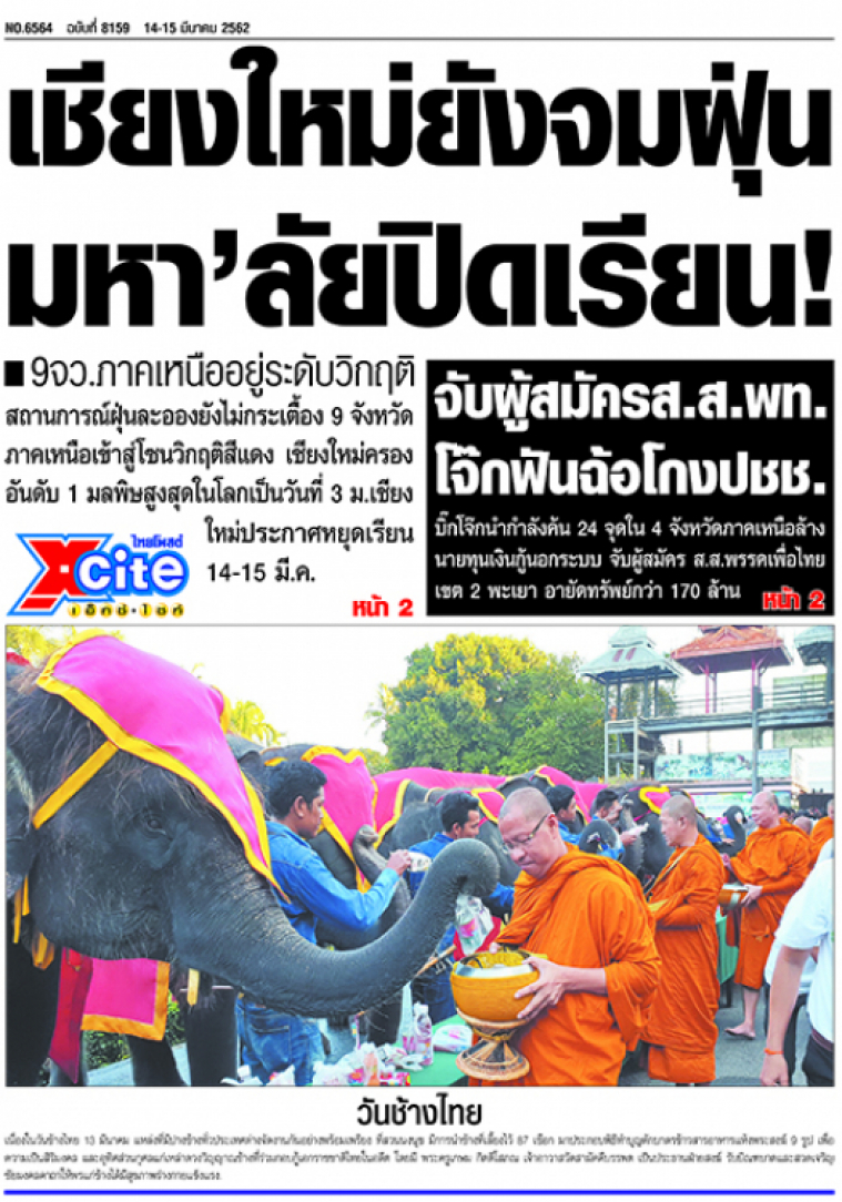 9จว.ภาคเหนืออยู่ระดับวิกฤติสถานการณ์ฝุ่นละอองยังไม่กระเตื้อง 9 จังหวัดภาคเหนือเข้าสู่โซนวิกฤติสีแดง เชียงใหม่ครองอันดับ 1 มลพิษสูงสุดในโลกเป็นวันที่ 3 ม.เชียงใหม่ประกาศหยุดเรียน 14-15 มี.ค.