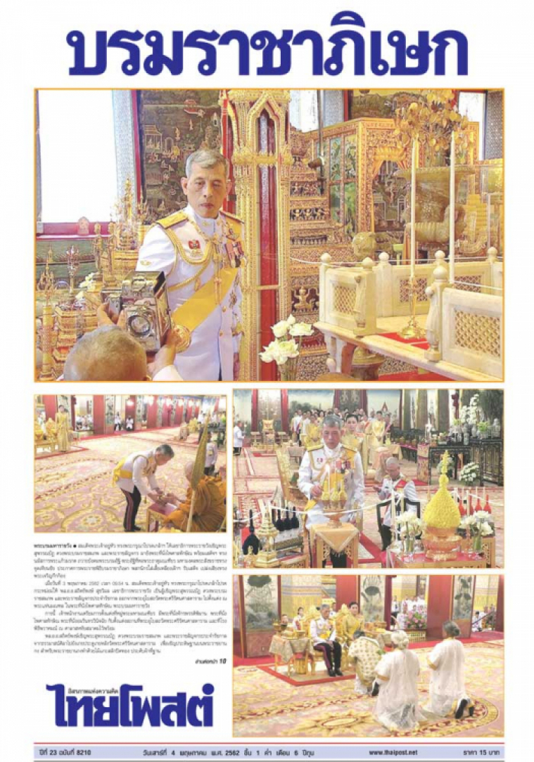 สมเด็จพระเจ้าอยู่หัว ทรงพระกรุณาโปรดเกล้าฯ ให้เลขาธิการพระราชวังเชิญพระสุพรรณบัฏ ดวงพระบรมราชสมภพ และพระราชลัญจกร มายังพระที่นั่งไพศาลทักษิณ พร้อมเสด็จฯ ทรงนมัสการพระแก้วมรกต ถวายบังคมพระบรมอัฐิ-พระอัฐิที่หอพระธาตุมณเฑียร มหามงคลพระสังฆราชทรงจุดเทียนชัยประกาศการพระราชพิธีบรมราชาภิเษก พสกนิกรใส่เสื้อเหลืองเฝ้าฯ รับเสด็จ เปล่งเสียงทรงพระเจริญกึกก้อง