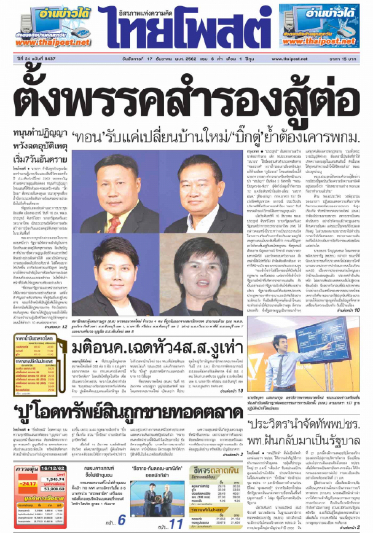 ที่ประชุมใหญ่พรรคอนาคตใหม่มีมติ 250 ต่อ 5 ขับ 4 ส.ส.งูเห่าออกจากพรรค ชง กก.บห.เคาะอังคารนี้ "สารวัตรต๊อก" โอดเสียใจที่สุดในชีวิต เชื่อเป็นเพราะโหวตสวน พ.ร.ก.โอนอัตรากำลังพล รับจุดยืนบางเรื่องของพรรคก็ไม่ได้เห็นด้วย ปูดมีคนคิดแบบตนแต่ไม่กล้าพูด ยันไม่กังวลหาบ้านใหม่ รอง หน.เพื่อไทยฟันธง พปชร.ไม่แก้ รธน.ม.256 แต่แก้รายมาตรา หวั่น "บิ๊กตู่" ยุบสภาหนีหากแผนครองอำนาจ 10 ปีสิ้นสุด