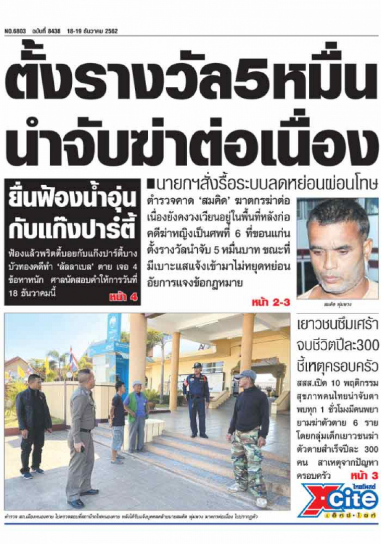 นายกฯสั่งรื้อระบบลดหย่อนผ่อนโทษตำรวจคาด ‘สมคิด’ ฆาตกรฆ่าต่อเนื่องยังคงวงเวียนอยู่ในพื้นที่หลังก่อคดีฆ่าหญิงเป็นศพที่ 6 ที่ขอนแก่น ตั้งรางวัลนำจับ 5 หมื่นบาท ขณะที่มีเบาะแสแจ้งเข้ามาไม่หยุดหย่อน อัยการแจงข้อกฎหมาย