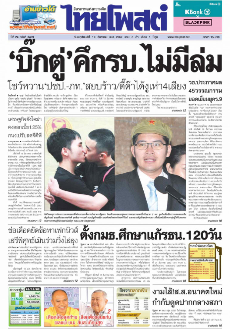 ผงะ! กลุ่ม LGBT โชว์กอดจูบดูดดื่มกลางสภาระหว่างยื่น กมธ.ผู้มีความหลากหลายทางเพศ เรียกร้องแก้ กม.คุ้มครองการสมรสในครอบครัวเพศหลากหลาย "ธัญวัจน์" โร่ขอโทษสังคม ปัด กมธ.เตรียมการ อ้างเด็กเล่นนอกบท ยอมรับทำรัฐสภาเสียหาย แต่โป๊ะแตกภาพทีวีชัดยืนกำกับเอง "สิระ" จี้ "อนค." รับผิดชอบ ร้อง "ชวน" ลงดาบ