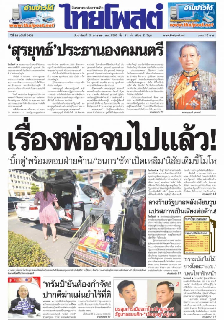 "บิ๊กตู่" ไม่หวั่นฝ่ายค้านจ่อซักฟอกไปถึงพ่อ สามารถชี้แจงได้ร้อยเปอร์เซ็นต์ ทุกอย่างถูกต้องตามกฎหมาย และมันจบไปนานแล้ว ไม่ได้เกี่ยวกับการทำงานในช่วง 5 เดือน "ธนกร" ลบเหลี่ยม "เหลิม" ไม่ทิ้งนิสัยเดิม ขี้โมโห ใส่ร้ายรัฐบาลอยู่เรื่อยๆ ยันรัฐบาลไม่เกเร ไม่เคยข่มขู่ทำร้ายใครเหมือนรัฐบาลในอดีตที่ "เฉลิม" คุ้นเคย ทะแม่ง! เพื่อไทยตั้งวงอีกทีม "อนุดิษฐ์" เรียก ส.ส.ที่ร่วมอภิปรายประชุมทัพไลน์ขุนศึกฝั่งธนฯ
