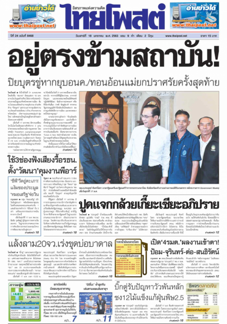 "ประยุทธ์" ย้ำพร้อมแจงศึกซักฟอก อุบไต๋ดึง "กรณ์" ร่วม ครม. ชี้เป็นเรื่องอนาคต จ่อยกเครื่องทีม ศก.มีรองนายกฯ รับผิดชอบการขับเคลื่อน สมาชิกเพื่อไทยข้องใจไม่ซักฟอก "บิ๊กป้อม-ศักดิ์สยาม" ไล่เช็กข้อมูลไอ้โม่งให้โครงการรับเหมา 900 ล้านผ่านคนสนิท อีกบิ๊กการันตีตำแหน่งให้คนใกล้ชิดแกนนำ พท. ลือหึ่งทุนใหญ่ส่งนักเจรจาเป่าข้อมูลให้เบาลง "ชวน" อบรม กมธ.ป.ป.ช.เป็นผู้ใหญ่แล้วแต่ยังไม่เปลี่ยนแปลงทำให้ภาพลักษณ์ติดลบ "จตุพร" เตือน "เสรีพิศุทธ์" ถ้าควบคุมอารมณ์จากการยั่วยุของ "ปารีณา-สิระ" ไม่ได้ควรลาออก