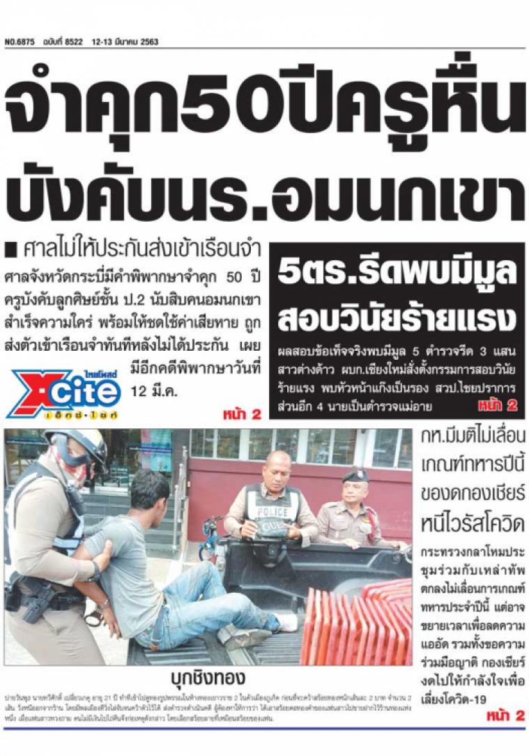 ศาลไม่ให้ประกันส่งเข้าเรือนจำศาลจังหวัดกระบี่มีคำพิพากษาจำคุก 50 ปีครูบังคับลูกศิษย์ชั้น ป.2 นับสิบคนอมนกเขา สำเร็จความใคร่ พร้อมให้ชดใช้ค่าเสียหาย ถูกส่งตัวเข้าเรือนจำทันทีหลังไม่ได้ประกัน เผยมีอีกคดีพิพากษาวันที่ 12 มี.ค.