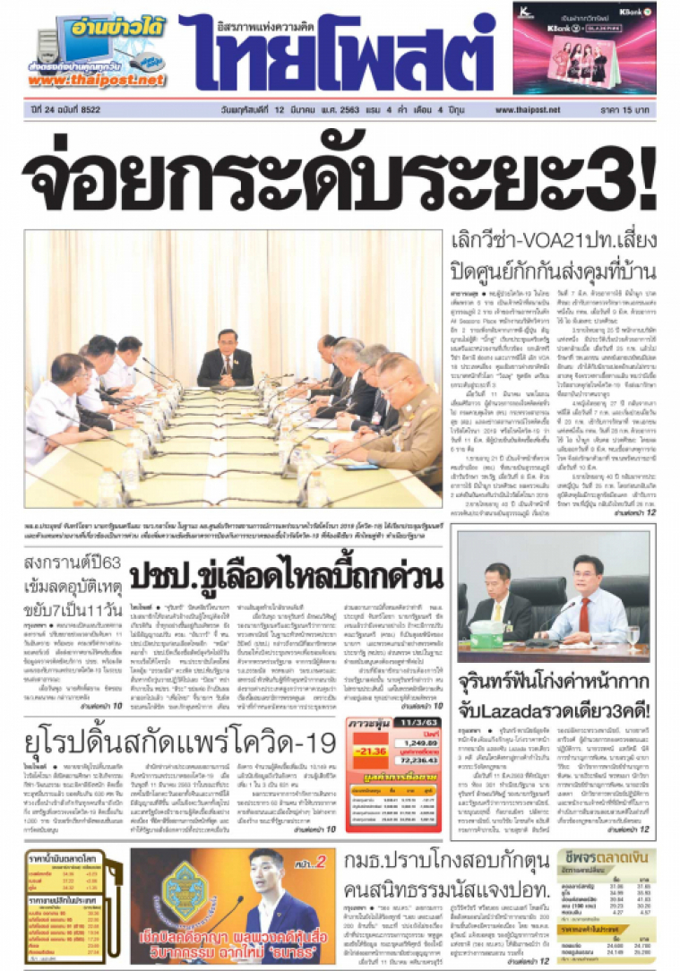 พบผู้ป่วยโควิด-19 ในไทยเพิ่มพรวด 6 ราย เป็นเจ้าหน้าที่สนามบินสุวรรณภูมิ 2 ราย เจ้าของร้านอาหารในตึก All Seasons Place พนักงานบริษัทวิศวกรอีก 2 รายเพิ่งกลับจากเกาหลี-ญี่ปุ่น สัญญาณไม่สู้ดี! "บิ๊กตู่" เรียกประชุมเครียดรัฐมนตรีและหน่วยงานที่เกี่ยวข้อง ยกเลิกฟรีวีซ่า อิตาลี ฮ่องกง และเกาหลีใต้ เลิก VOA 18 ประเทศเสี่ยง คุมเข้มชาวต่างชาติหลังระบาดหนักทั่วโลก "วิณษุ" พูดชัด เตรียมยกระดับสู่ระยะที่ 3