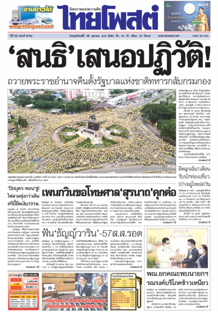 "ศาลแพ่ง" ยกคำร้องคุ้มครองชั่วคราวสถานการณ์ฉุกเฉินร้ายแรงหลังนายกฯ ประกาศยกเลิก ส่วนประกาศชอบด้วยกฎหมายหรือไม่ นัดพร้อม-สืบพยาน 21 ธ.ค.นี้ "เพนกวิน” แถลงขอโทษคดีละเมิดอำนาจศาล "ศาล" เมตตาให้โอกาสปรับตัว "ตัน-สุรนาถ" นอนคุกต่อยังไม่ให้ประกันตัวรอบ 3 "ชาวบุรีรัมย์" ครึ่งแสนใส่เสื้อเหลืองรวมพลังปกป้องสถาบัน