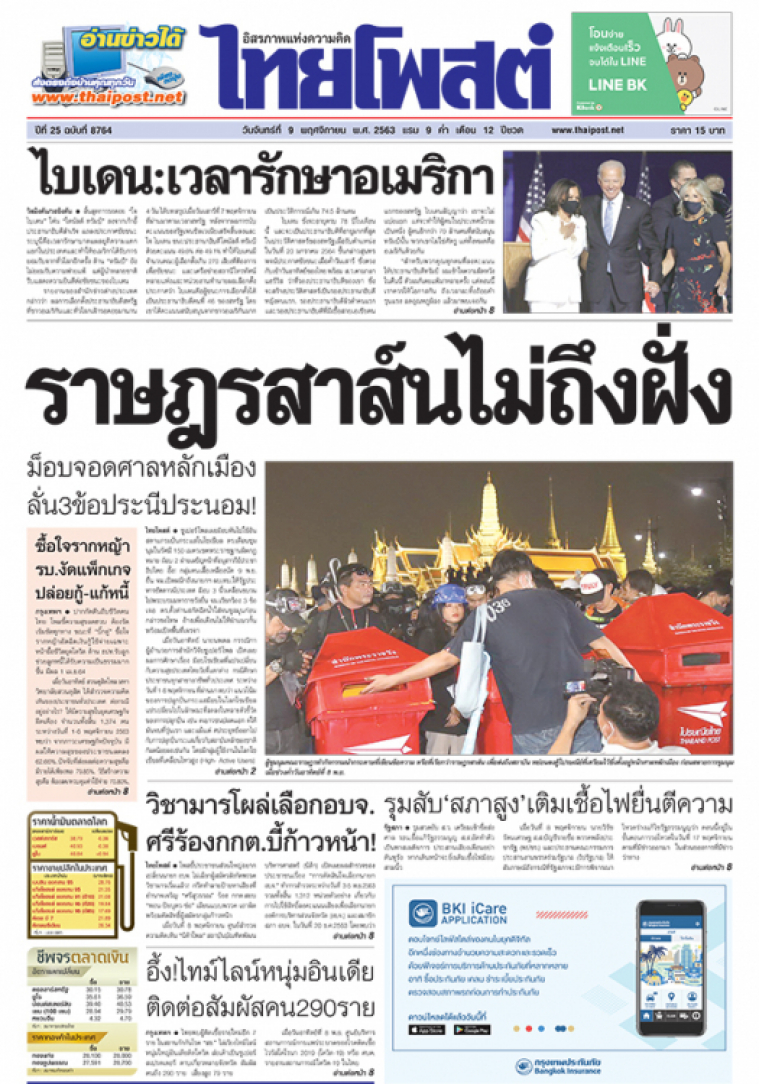ซูเปอร์โพลเผยม็อบหันไปใช้อินสตาแกรมปั่นกระแสในโซเชียล ตร.เตือนชุมนุมในรัศมี 150 เมตรเขตพระราชฐานผิดกฎหมาย ม็อบ 2 ฝ่ายเผชิญหน้าที่อนุสาวรีย์ประชาธิปไตย อึ้ง! กลุ่มคนเสื้อเหลืองนัด 9 พ.ย. ยื่น จม.เปิดผนึกถึงนายกฯ-ผบ.ทบ.ให้รัฐประหารชัตดาวน์ประเทศ ม็อบ 3 นิ้วเคลื่อนขบวนไปพระบรมมหาราชวังยื่น จม.เรียกร้อง 3 ข้อ