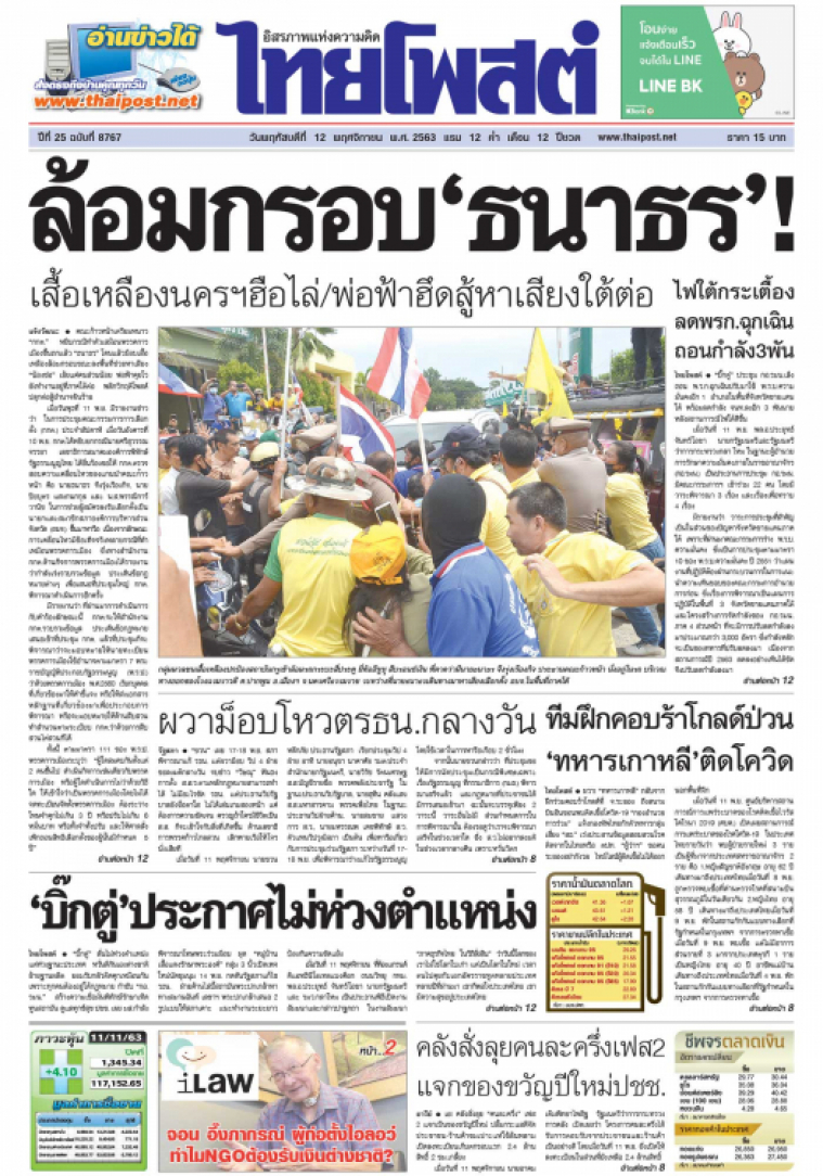 "บิ๊กตู่" ลั่นไม่ห่วงตำแหน่ง แต่ห่วงฐานะประเทศ หวั่นตีกันเองต่างชาติย้ายฐานผลิต ยอมรับกลัวติดคุกเหมือนกันเพราะทุกคนต้องอยู่ใต้กฎหมาย กำชับ "กอ.รมน." สร้างความเชื่อมั่นพิทักษ์รักษาเทิดทูนสถาบัน ดูแลทุกข์สุข ปชช. เผย มส.กำลังพิจารณาโทษพระร่วมม็อบ ผุด "หมู่บ้านเสื้อแดงรักษาพระองค์" กลุ่ม 3 นิ้วเปิดเพจใหม่นัดชุมนุม 14 พ.ย. กดดันรัฐสภาแก้ไข รธน. ฝ่ายค้านไล่บี้สถาบันพระปกเกล้าหาทางสมานฉันท์ เลขาฯ พระปกเกล้าเสนอ 2 รูปแบบให้สภาเคาะ แนะทำงานระยะยาวป้องกันความขัดแย้ง