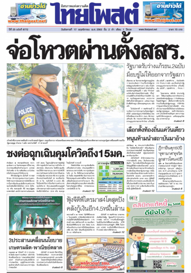 จับตาอนาคตรัฐธรรมนูญไทย 17 พ.ย.ประเดิมถก 7 ร่างแก้ไข ฝ่ายรัฐบาลส่งสัญญาณรับหลักการแค่ 2 ฉบับ ส่วนอีก 5 ตีตกโดยเฉพาะฉบับไอลอว์ ส่วนฝ่ายค้านออกฉันทานุมัติหนุนทั้ง 7 ฉบับ “ก้าวไกล” แบไต๋จะดันร่างไอลอว์เป็นร่างหลัก “บิ๊กตู่” อารมณ์ดีย้ำจะทำหน้าที่จนกว่าไม่ได้ทำ ขน 18 กองร้อยดูแลความสงบ ตร.ประกาศชัดห้ามปิ้งย่างผิดกฎหมาย แต่คณะราษฎรอ้างพื้นที่ราษฎร เปิดจองชุดหมูกระทะ 599 แล้ว