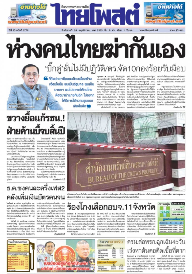 “ประยุทธ์” ลั่นไม่มีปฏิวัติ-ประกาศกฎอัยการศึก ซัดเป็นแค่ข้ออ้างระดมคน เตือนรัฐบาลมีหน้าที่ทำให้ทุกกลุ่มสงบเรียบร้อย ไม่ดึงม็อบชนม็อบเพราะไม่ต้องการให้มีการฆ่าแกงกันอีกแล้ว ชี้เอกสาร สมช.สกัดผู้ชุมนุมเป็นงานรูทีนด้านความมั่นคง “ประวิตร” เชื่อชุมนุม 25 พ.ย.ไม่บานปลาย “นครบาล” จัด 10 กองร้อยรับมือ เริ่มประเดิมติดป้ายห้าม ขึงรั้วลวดหนาม แกนนำเตรียมหนาว! บช.น.เตรียมถกมาตรา 112 "เสี่ยหนู" ยันพรรคร่วมรัฐบาลเหนียวแน่นยังจับมือหนุน “ลุงตู่”