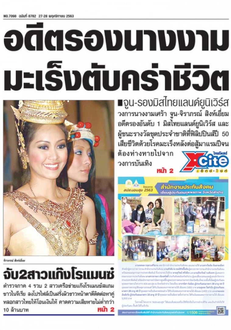 จูน-รองมิสไทยแลนด์ยูนิเวิร์สวงการนางงามเศร้า จูน-จิราภรณ์ สิงห์เอี่ยม อดีตรองอันดับ 1 มิสไทยแลนด์ยูนิเวิร์ส และผู้ชนะรางวัลชุดประจำชาติที่ฟิลิปปินส์ปี 50 เสียชีวิตด้วยโรคมะเร็งหลังต่อสู้มาแรมปีจนต้องห่างหายไปจากวงการบันเทิง