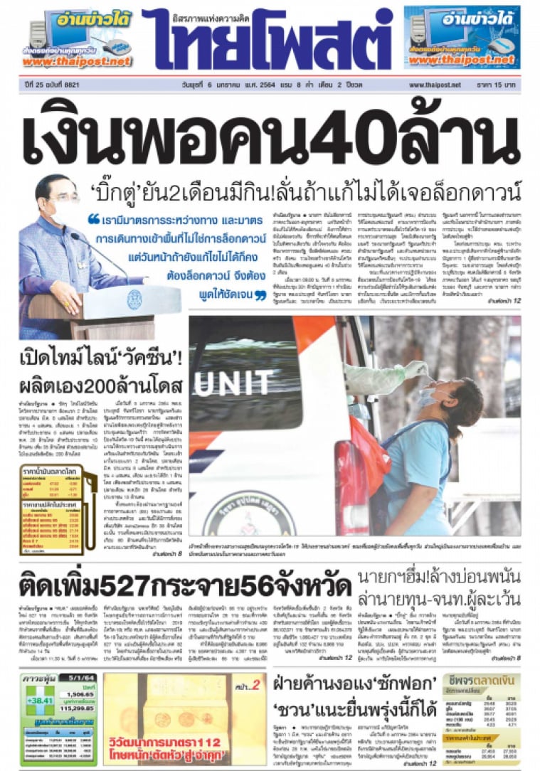 นายกฯ ยันไม่ล็อกดาวน์ภาคตะวันออก-สมุทรสาคร แต่วันหน้าถ้ายังแก้ไม่ได้ก็คงต้องล็อกแน่ ติงการให้ข่าวยังไม่ค่อยตรงกัน ชี้การที่จะทำให้คนทั้งหมดไปในทิศทางเดียวกันเข้าใจตรงกัน คือต้องฟังมาตรการของรัฐ ซื่อสัตย์ต่อตนเองครอบครัว สังคม รวมไทยสร้างชาติต้านโควิด ยืนยันมีเงินเพียงพอดูแลคน 40 ล้านในช่วง 2 เดือน