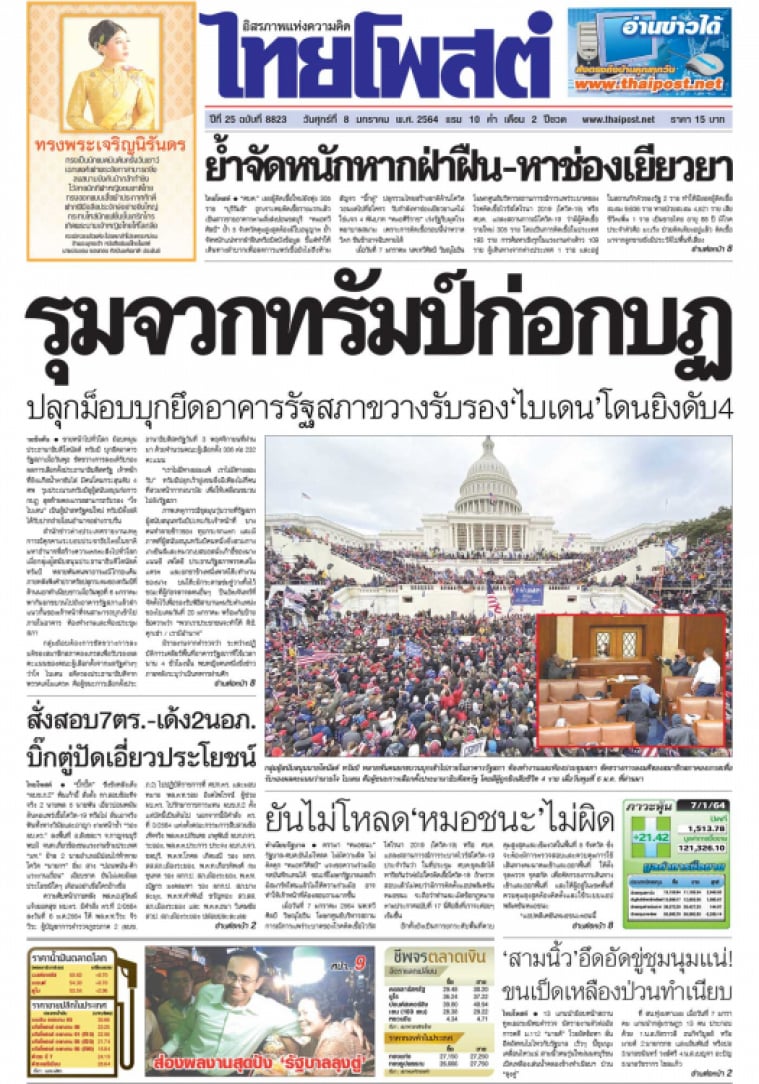 ขายหน้าไปทั่วโลก ม็อบหนุนประธานาธิบดีโดนัลด์ ทรัมป์ บุกยึดอาคารรัฐสภาเมื่อวันพุธ ขัดขวางการลงมติรับรองผลการเลือกตั้งประธานาธิบดีสหรัฐ เจ้าหน้าที่ยิงแก๊สน้ำตาขับไล่ มีคนโดนกระสุนดับ 4 ศพ รุมประณามทรัมป์ยุผู้สนับสนุนก่อการกบฏ สุดท้ายคองเกรสสามารถรับรอง "โจ ไบเดน" เป็นผู้นำสหรัฐคนใหม่ ทรัมป์ตั้งสติได้รับปากถ่ายโอนอำนาจอย่างราบรื่น
