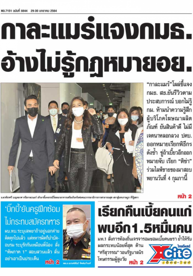 "กาละแมร์" โผล่ชี้แจง กมธ.สธ. ยันรีวิวตามประสบการณ์ อ้างไม่รู้ข้อ กม.-ประกาศ อย.ห้ามนำความรู้สึกผู้บริโภครีวิวผลิตภัณฑ์ ยืนยันไม่เจตนาหลอกลวง รอง ผบก.ปคบ.เตรียมออกหมายเรียกรอบ 2 หลังขอเลื่อนนัด ขู่ถ้าไม่มา เหตุผลฟังไม่ขึ้น ออกหมายจับแน่ เรียก "ติช่า" สอบพยาน 4 ก.พ.