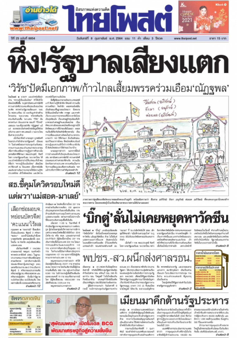 นายกฯ แนะนำหนังสือน่าอ่าน “ความรู้เรื่องเมืองไทย” ทำให้เข้าใจสังคมไทยดียิ่งขึ้น ระบุสถาบันพระมหากษัตริย์ ความสามัคคีปรองดองคือจุดแข็งของไทย สะพัด! พรรคร่วมรัฐบาลเสียงแตก รมช.ใน พปชร.เตรียม 30 ส.ส.กับงูเห่าฝ่ายค้านโหวตสวน รมต.บางคน หวังกดดันปรับ ครม.ดันตัวเองขึ้น รมว.แทน "วิรัช" ยันพรรคร่วมฯ ต้องเอกภาพ ขณะที่ "วิโรจน์" เฉลยเองรมต.ที่ถูกเขย่าคือ "ณัฏฐพล" แม้แต่ ส.ส.พปชร.ยังส่ายหน้าส่งข้อมูลให้ช่วยอภิปราย เลขาฯ พท.แพลมมี 4 รมต.จะโดนยื่นศาล-ป.ป.ช.ด้วย