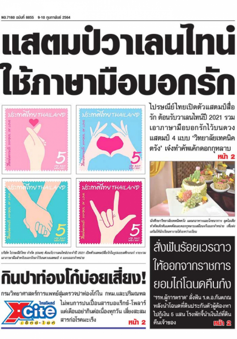 ไปรษณีย์ไทยเปิดตัวแสตมป์สื่อรัก ต้อนรับวาเลนไทน์ปี 2021 รวมเอาภาษามือบอกรักไว้บนดวงแสตมป์ 4 แบบ ‘วิทยาลัยเทคนิคตรัง’ เจ๋งทำคัพเค้กดอกกุหลาบ
