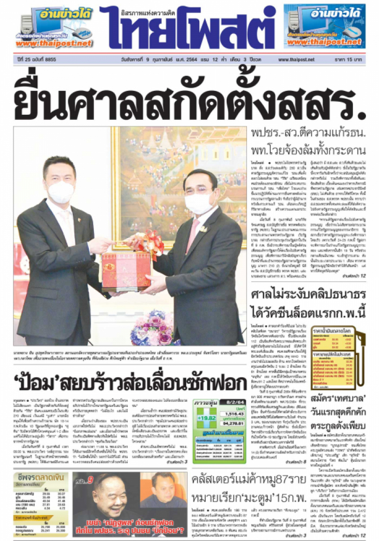 ศาลยกคำร้องดีอีเอส ไม่ระงับคลิปไลฟ์สด "ธนาธร" วิจารณ์รัฐบาลเรื่องวัคซีนโควิดพาดพิงสถาบัน ชี้ไม่ชัดเจนผิด 112 เป็นข้อเท็จจริงพระบาทสมเด็จพระเจ้าอยู่หัวถือหุ้นสยามไบโอไซเอนซ์ มิได้ทำให้พระองค์เสื่อมเสีย ศบค.ขอศึกษาเรื่องให้ผู้ฉีดวัคซีนเข้าประเทศก่อน เหตุ WHO รายงานว่ายังไม่ปลอดภัย ด้าน คกก.โรคติดต่อฯ สรุปแผนฉีดวัคซีน 2 ระยะ 2 ล้านโดส กับ 61 ล้านโดส คาดสิ้นปีฉีดกลุ่มเป้าหมายครบ "อนุทิน" เผย ก.พ.นี้ได้วัคซีนจากซิโนแวคล็อตแรก 2 แสนโดส ดีดปากคนไม่ใช่แพทย์-ผู้เชี่ยวชาญให้สงบปากสงบคำ