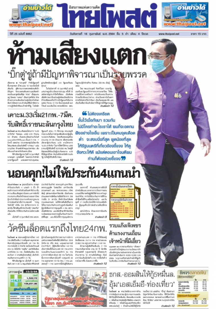 ครม.ไฟเขียวมาตรการด้านการเงินอุ้มประชาชน-ผู้ประกอบการเอสเอ็มอีฝ่าวิกฤติโควิดเพิ่มเติม สั่งออมสิน-ธ.ก.ส.อัด 4 หมื่นล้านบาทปล่อยกู้อาชีพอิสระ-เกษตรกร พร้อมทุ่ม 1 หมื่นล้านดูแลธุรกิจท่องเที่ยว สศช.เผยเงินกู้ 1 ล้านล้านเหลือใช้สู้โควิดรอบใหม่ 2.8 แสนล้าน "บิ๊กตู่" ลั่นอย่าเอาปัญหาโควิดมาโยงการเมือง ชี้ทั่วโลกได้รับผลกระทบหมด หลายอย่างเราดีขึ้นกว่าเขา ย้อน "ทักษิณ" แค่เคารพ กม.ทุกอย่างก็เดินหน้าไปได้
