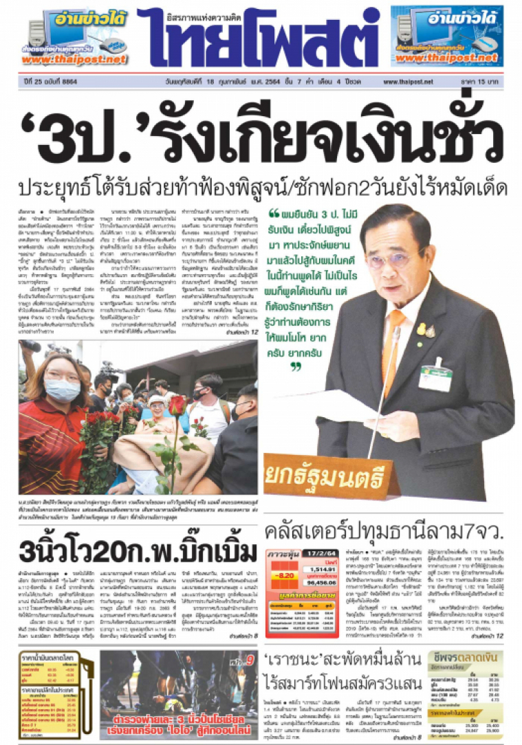 “ศบค.” เผยผู้ติดเชื้อใหม่กลับมาพุ่งที่ 168 ราย ยังจับตา “กทม.-สมุทรสาคร-ปทุมธานี” โดยเฉพาะคลัสเตอร์ตลาดพรพัฒน์กระจายเชื้อไป 7 จังหวัด “อนุทิน” ยันวัคซีนมาตามแผน ส่วนเข็มแรกให้คณะกรรมการวัคซีนเคาะเลือกใคร “ยิ่งลักษณ์” อวด "ยูเออี" จัดฉีดให้ฟรี ส่วน “แม้ว” โอ่มีภูมิคุ้มกันไม่ต้องฉีด