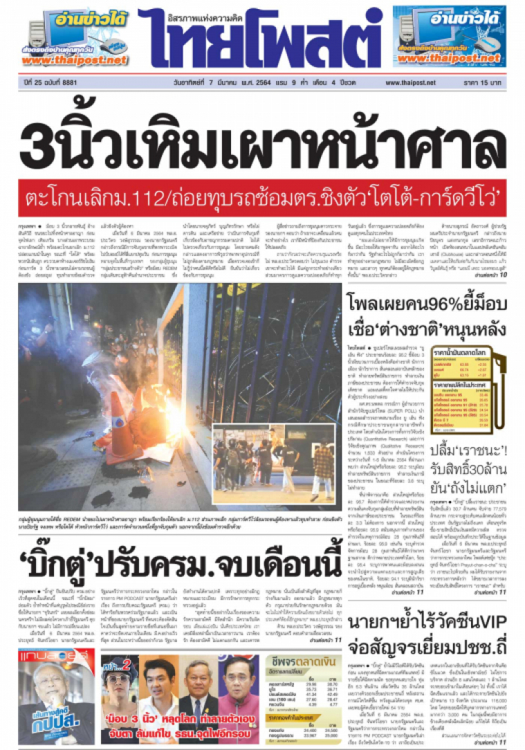 ซูเปอร์โพลเผยผลสำรวจ "ยู เอ็น ฟัง" ประชาชนร้อยละ 96.2 ชี้ม็อบ 3 นิ้วมีขบวนการเบื้องหลังคือต่างชาติ นักการเมือง นักวิชาการ สั่นคลอนสถาบันหลักของชาติ ทำลายทรัพย์สินราชการ ทำลายเงินภาษีของประชาชน ต้องการให้ตำรวจจับกุมเด็ดขาด แอมเนสตี้ตกใจศาลไม่ให้ประกันตัวผู้ประท้วงอย่างสงบ