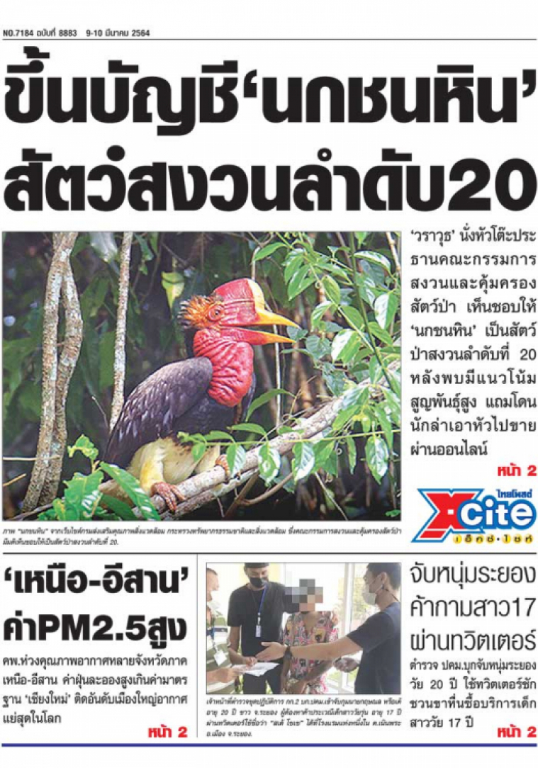 "วราวุธ" นั่งหัวโต๊ะประธานคณะกรรมการสงวนและคุ้มครองสัตว์ป่า ไฟเขียวขึ้นบัญชี "นกชนหิน" เป็นสัตว์ป่าสงวนลำดับที่ 20 หลังพบความสามารถในการขยายพันธุ์ต่ำ มีแนวโน้มสูญพันธุ์สูง แถมถูกล่าเอาโหนกไปขายผ่านออนไลน์ "มูลนิธิสืบนาคะเสถียร" ห่วงหลังเป็นสัตว์คุ้มครองจะเป็นแรงจูงใจนักสะสมผิด กม.