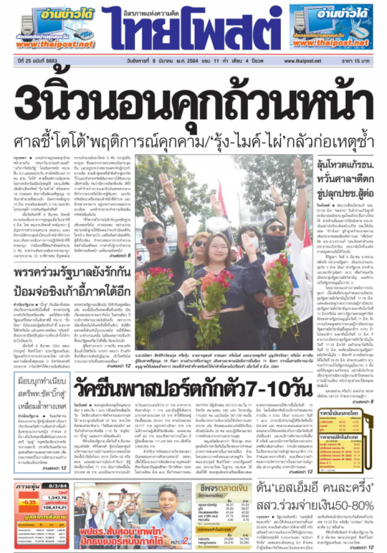แกนนำราษฎรนอนคุกถ้วนหน้าตามก้น “เพนกวิน-อานนท์-แอมมี่” “แก๊งการ์ดปิยณัฐ” โดนข้อหาหนัก ทนายยื่น 6.3 แสนขอประกัน ศาลไฟเขียวแค่ 14 คน ส่วน “โตโต้” ศาลชี้พฤติการณ์คุกคามไม่เกรงกลัวกบิลเมืองไม่อนุมัติ บช.น.เล็งฟันเพิ่มอีกปล้นทรัพย์ “รุ้ง-ไมค์-ไผ่” พร้อมพวก 18 รายคอตก อัยการยื่นฟ้องคดีชุมนุม 19 กันยาสำนวนที่สองแล้ว นัดตรวจหลักฐาน 15 มี.ค. ศาลเมินปล่อยตัว 3 ราย บอกกลัวไปก่อเหตุซ้ำ ราชทัณฑ์คุมตัวทันที