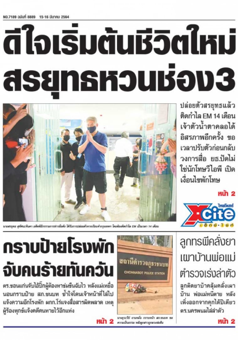 ราชทัณฑ์ปล่อยตัว "สรยุทธ" ติดกำไล EM 14 เดือน "อดีตรายการข่าวชื่อดัง" น้ำตาคลอดีใจได้รับอิสรภาพเริ่มต้นชีวิตใหม่อีกครั้ง ขอเวลาปรับตัวก่อนหวนคืนจอช่อง 3 ยธ.ยันไม่ใช่นักโทษวีไอพี ชี้จัดรายการข่าวได้ ห้ามทำกิจกรรมการเมือง