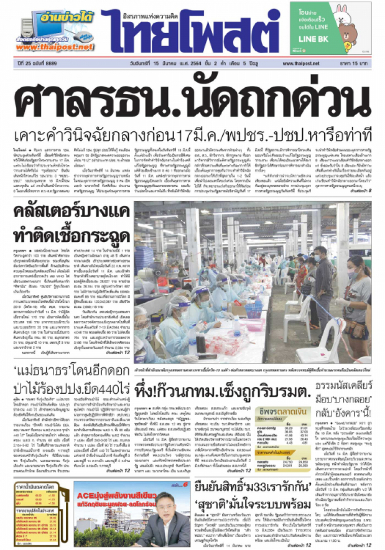 ผลต่อเนื่องบางแค ไทยโควิดกระฉูดกว่า 100 ราย เดินหน้าคัดกรองเชิงรุกตลาดใกล้เคียงยกยวง ขณะที่อนุทินสั่งเร่งหาวัคซีนบริการพื้นที่ ด้านอธิบดีกรมควบคุมโรคยอมรับคลัสเตอร์ใหม่ เตือนไม่มีอาการการแพร่เชื้อรวดเร็ว เผย WHO ไฟเขียวแอสตราเซเนกา ชี้เกิดแค่ที่เดนมาร์ก "ทิพานัน" สับเละ "ธนาธร" รู้ทุกเรื่องยกเว้นเรื่องจริง