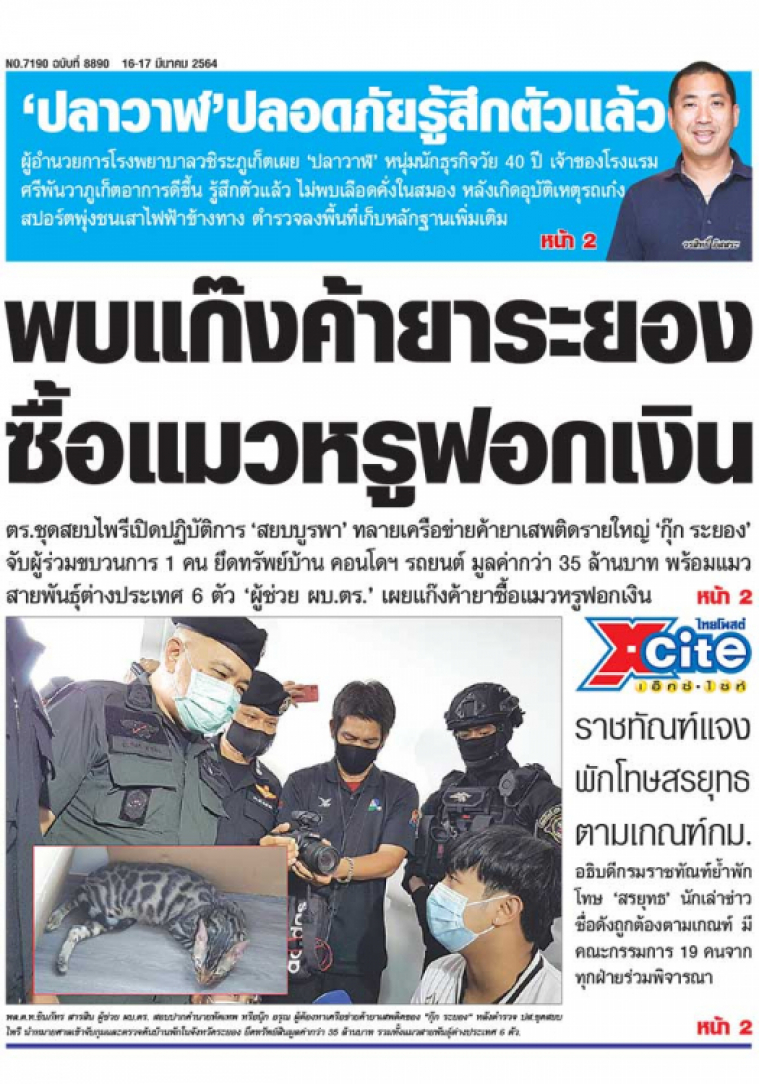 เจ้าหน้าที่ตำรวจชุดสยบไพรี บช.ปส.เปิดปฏิบัติการ "สยบบูรพา" ทลายเครือข่ายค้ายาเสพติดรายใหญ่ภาคตะวันออก "กุ๊ก ระยอง" จับผู้ร่วมขบวนการ 1 คน ยึดทรัพย์สินบ้านพัก คอนโดฯ รถยนต์ มูลค่ากว่า 35 ล้านบาท พร้อมแมวสายพันธุ์ต่างประเทศ 6 ตัว "ผู้ช่วย ผบ.ตร." เผยแก๊งค้ายาใช้วิธีซื้อแมวหรูฟอกเงิน