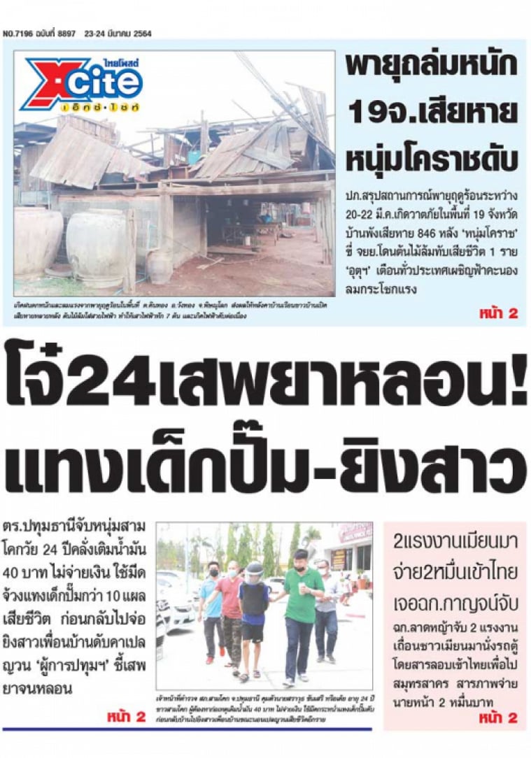 ตร.ปทุมธานีจับหนุ่มสามโคกวัย 24 ปีคลุ้มคลั่งเติมน้ำมัน 40 บาทไม่จ่าย ใช้มีดแทงเด็กปั๊มกว่า 10 แผลเสียชีวิต ก่อนกลับมาก่อเหตุยิงสาวเพื่อนบ้านดับคาเปลญวน แม่รู้ข่าวช็อกลูกชายเป็นฆาตกร "ผู้การปทุมธานี" เผยคนร้ายต้มน้ำกระท่อมเสพจนหลอน