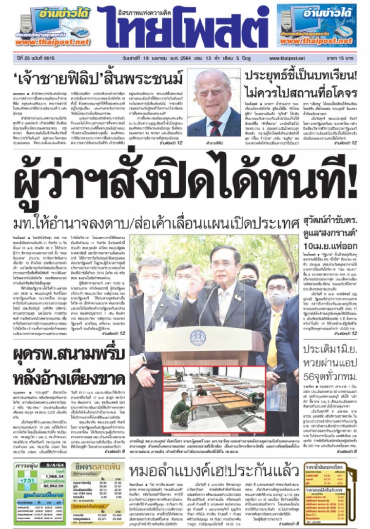 ไทยติดโควิดพุ่ง 559 ราย ศบค.สั่งปิดสถานบันเทิง 41 จังหวัด 14 วัน ตั้งแต่ 10 เม.ย. ส่วนอีก 36 จ. ให้อำนาจผู้ว่าฯ พิจารณาตามสถานการณ์ ตั้ง “หมอปิยะสกล” ประธาน กก.จัดหาวัคซีนทางเลือกอีก 10 ล้านโดส ปลดล็อกเอกชนนำเข้า มท.ไฟเขียวทุกจังหวัดพบติดเชื้อสถานประกอบการในพื้นที่ปิดได้ทันที "รมว.ดีอีเอส" โชว์ผลตรวจไม่ติดโควิด กองทัพออกมาตรการเข้มฝ่าฝืนฟันวินัยขั้นสูงสุด