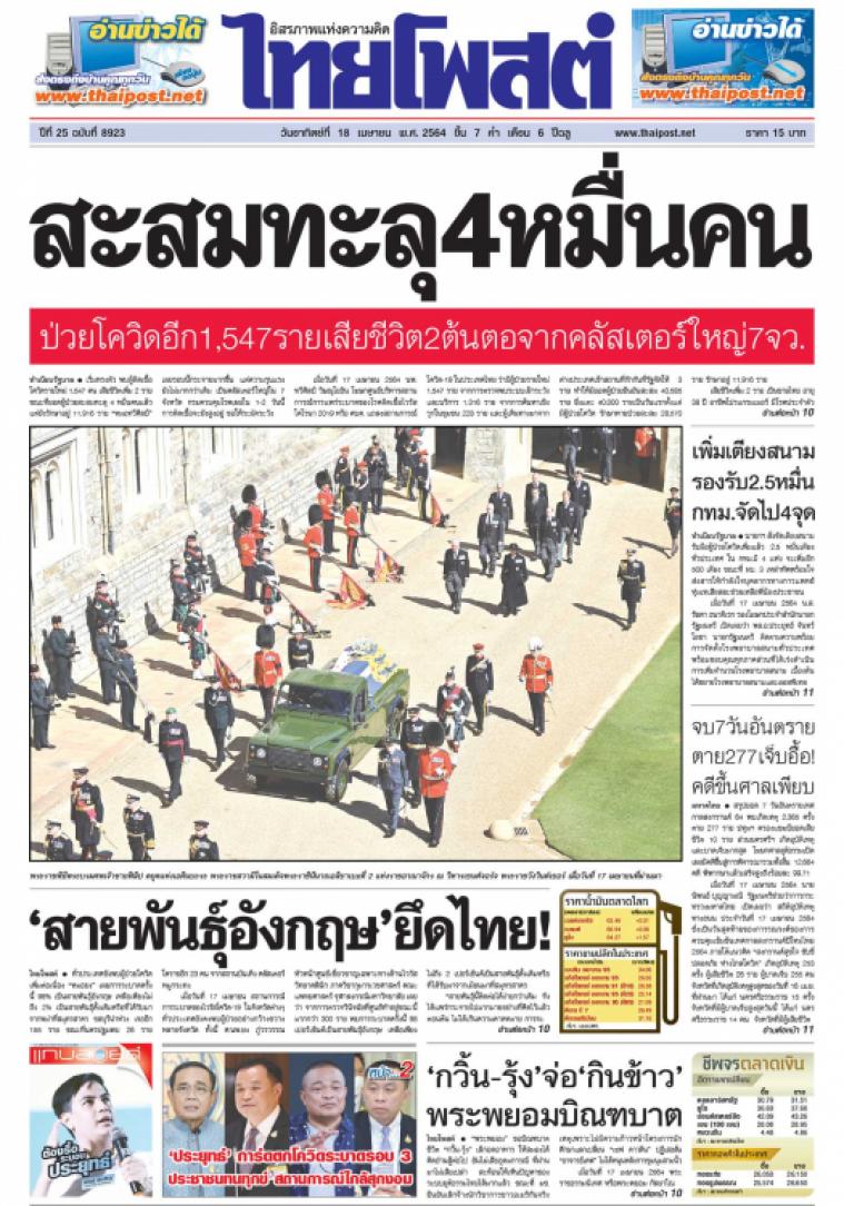 สรุปยอด 7 วันอันตรายเทศกาลสงกรานต์ 64 พบเกิดเหตุ 2,365 ครั้ง ตาย 277 ราย ปทุมฯ ครองแชมป์ยอดเสียชีวิต 10 ราย ส่วนนครศรีฯ เกิดอุบัติเหตุและบาดเจ็บมากสุด โฆษกศาลยุติธรรมเปิดเผยมีคดีขึ้นสู่การพิจารณารวมทั้งสิ้น 12,664 คดี พิพากษาแล้วเสร็จสูงถึงร้อยละ 99.71