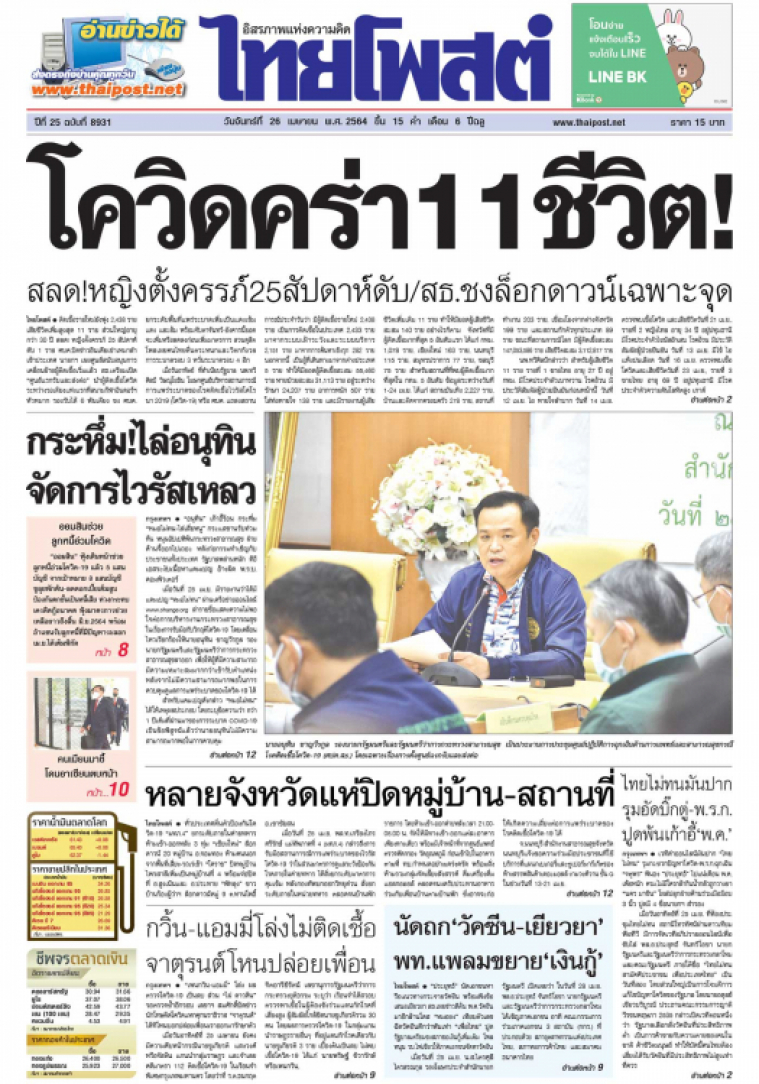 ติดเชื้อรายใหม่ยังพุ่ง 2,438 ราย เสียชีวิตเพิ่มสูงสุด 11 ราย ส่วนใหญ่อายุกว่า 30 ปี สลด! หญิงตั้งครรภ์ 25 สัปดาห์ดับ 1 ราย ศบค.ปัดข่าวอินเดียเช่าเหมาลำเข้าประเทศ นายกฯ เผยศูนย์สนับสนุนการเคลื่อนย้ายผู้ติดเชื้อเริ่มแล้ว สธ.เตรียมเปิด "ศูนย์แรกรับและส่งต่อ" นำผู้ติดเชื้อโควิดระหว่างรอเตียงแห่งแรกที่สนามกีฬาอินดอร์ฯ