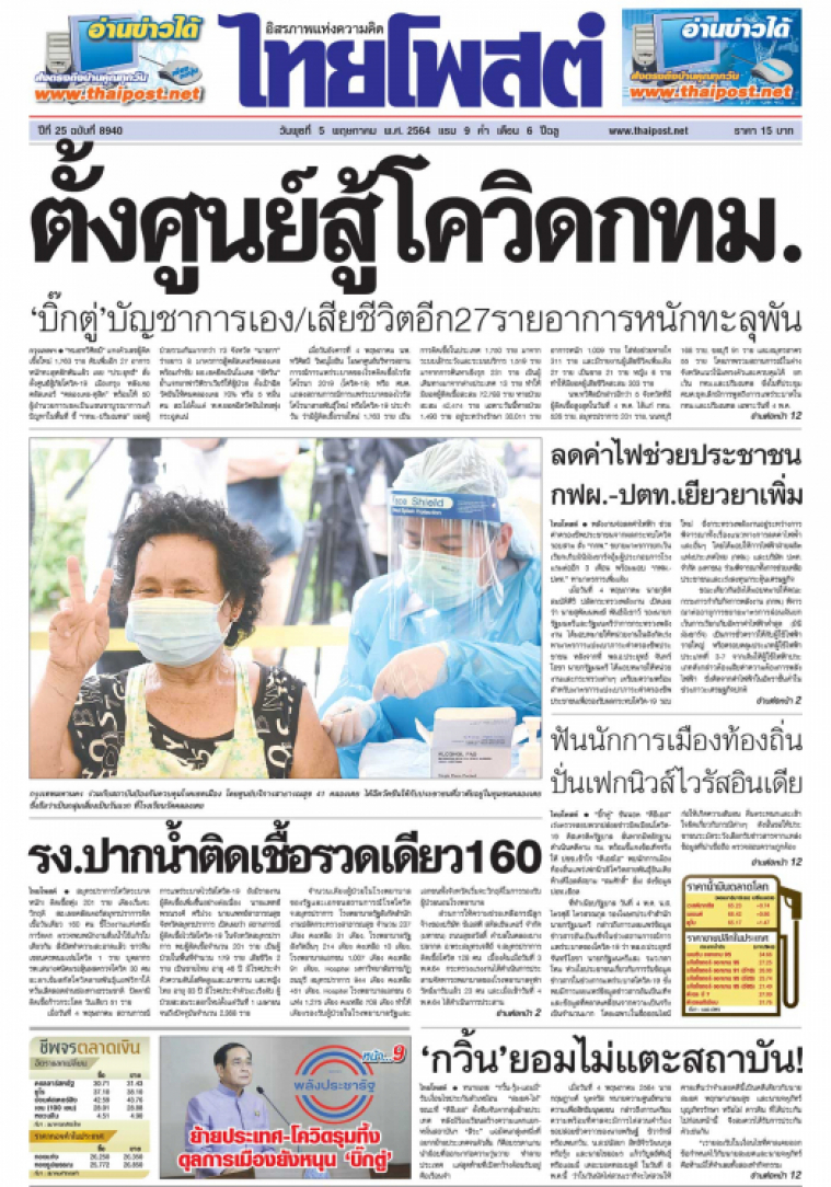 สมุทรปราการโควิดระบาดหนัก! ติดเชื้อพุ่ง 201 ราย เตียงเริ่มจะวิกฤติ สธ.เผยคลัสเตอร์สมุทรปราการติดเชื้อวันเดียว 160 คน ชี้โรงงานแห่งหนึ่งการ์ดตก ตรวจพบพนักงานดื่มน้ำใช้แก้วใบเดียวกัน สั่งปิดทำความสะอาดแล้ว ชาวจีนเขยนครพนมเซ่นโควิด 1 ราย บุคลากร รพ.เสนางคนิคมรอลุ้นผลตรวจโควิด 30 คน ยะลาเข้มสกัดโควิดสายพันธุ์แอฟริกาใต้ หวั่นเล็ดลอดผ่านช่องทางธรรมชาติ ปัตตานีติดเชื้อก้าวกระโดด วันเดียว 51 ราย