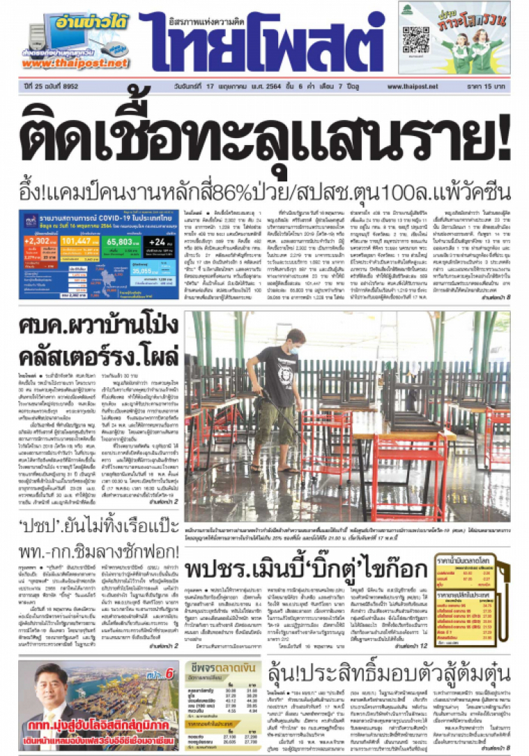 ติดเชื้อโควิดสะสมทะลุ 1 แสนราย ติดเชื้อใหม่ 2,302 ราย ดับ 24 ราย อาการหนัก 1,228 ราย ใส่ท่อช่วยหายใจ 408 ราย ผงะ! แคมป์คนงานหลักสี่ตรวจเชื้อเชิงรุก 559 ราย ติดเชื้อ 482 หรือ 86% สั่งปิดและห้ามเคลื่อนย้าย กทม.เฝ้าระวัง 27 คลัสเตอร์สำคัญ ที่กระจายอยู่ใน 17 เขต ยังเป็นห่วงอีก 5คลัสเตอร์ “สิระ” จี้ บ.อิตาเลียนไทยฯ แสดงความรับผิดชอบเหตุทอดทิ้งคนงาน