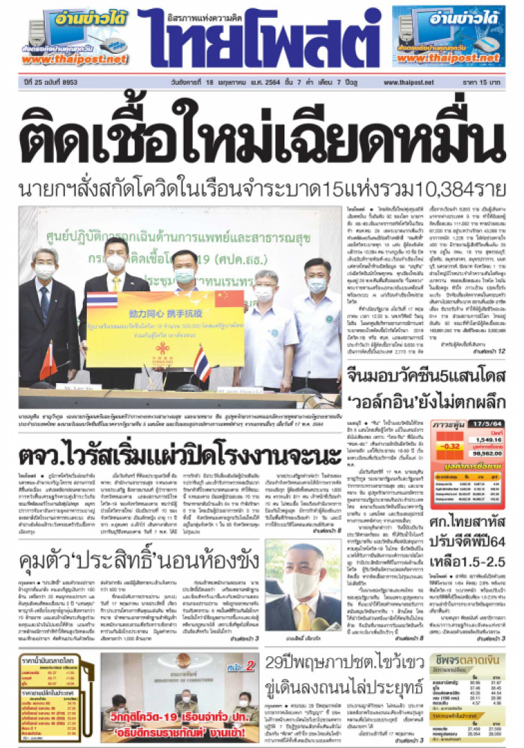 ไทยติดเชื้อใหม่พุ่งทุบสถิติเฉียดหมื่น! รั้งอันดับ 92 ของโลก นายกฯ สั่ง ยธ.-สธ.เข้มมาตรการสกัดโควิดในเรือนจำ ศบค.พบ 25 เขตระบาดมากเพิ่มเร็ว ห่วงคลัสเตอร์แคมป์ก่อสร้างหลักสี่ "สมศักดิ์" เผยโควิดระบาดคุก 15 แห่ง ผู้ต้องขังติดแล้วรวม 10,384 คน วางกฎเข้ม 10 ข้อ ปัดเด้งอธิบดีราชทัณฑ์-ผบ.เรือนจำเชียงใหม่