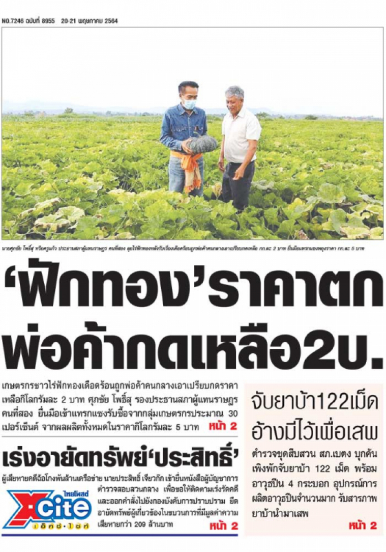 เกษตรกรชาวไร่ฟักทองเดือดร้อนถูกพ่อค้าคนกลางเอาเปรียบกดราคาเหลือกิโลกรัมละ 2 บาท ศุภชัย โพธิ์สุ รองประธานสภาผู้แทนราษฎรคนที่สอง ยื่นมือเข้าแทรกแซงรับซื้อจากกลุ่มเกษตรกรประมาณ 30 เปอร์เซ็นต์ จากผลผลิตทั้งหมดในราคากิโลกรัมละ 5 บาท