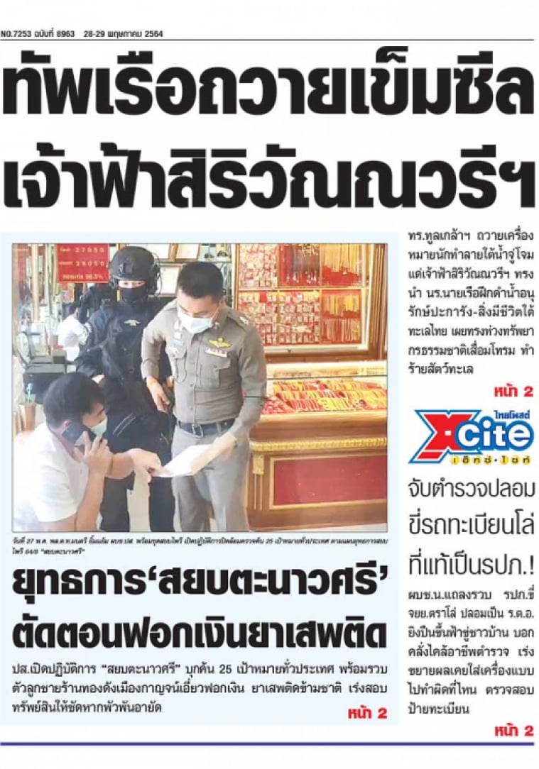 ปส.เปิดปฏิบัติการ "สยบตะนาวศรี" บุกค้น 25 เป้าหมายทั่วประเทศ พร้อมรวบตัวลูกชายร้านทองดังเมืองกาญจน์เอี่ยวฟอกเงิน ยาเสพติดข้ามชาติ เผย 2 ปีมานี้ตรวจยึดไอซ์กว่า 3,200 กก. ลักลอบลำเลียงจากประเทศเพื่อนบ้านเข้าสังขละบุรี
