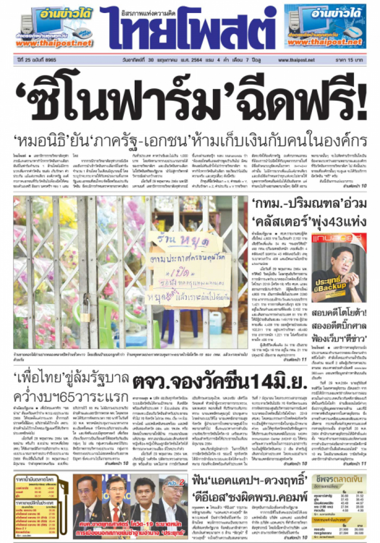 ปลัด สธ.ยันทุกจังหวัดซ้อมระบบฉีดวัคซีนได้ตามเป้าหมาย ดีเดย์ฉีดพร้อมกันทั่วประเทศ 7 มิ.ย.แน่นอน ส่วนการลงทะเบียนรับวัคซีนสำหรับประชาชนทั่วไป 76 จังหวัด ไม่รวม กทม. เริ่ม 14 มิ.ย. ทางไลน์ แอปพลิเคชันหมอพร้อม แอปพลิเคชันของจังหวัด อสม. และ รพ.สต. หรือติดต่อโรงพยาบาลใกล้บ้าน กรมอนามัย เผยมติประชุม คกก.อนามัยแม่และเด็กแห่งชาติ หญิงท้อง-หญิงให้นมลูกฉีดวัคซีนโควิดได้ พิจารณาตามความเสี่ยง มีโรคประจำตัว