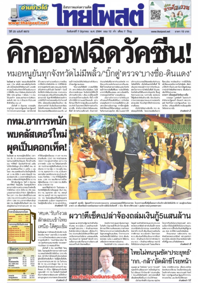“อนุทิน” สยบปมเลื่อนฉีดย้ำคิกออฟ 7 มิ.ย. หลังสั่ง สสจ.เคลียร์ทุกจังหวัดแล้ว มั่นใจคนไทยได้วัคซีนตามเป้า แจงหลักควบคุมโรคต้องจัดสรรให้โซนสีแดงมากกว่าพื้นที่อื่น กทม.การันตีลงทะเบียนไทยร่วมใจได้ฉีด 100% ลุยวันละ 7 หมื่นคน 7-14 มิ.ย.ได้แอสตร้าฯ สปสช.เผยจ่ายอาการไม่พึงประสงค์แล้ว 393 ราย 3 ล้านบาท ทั่วประเทศคึกคักพร้อม Kick off