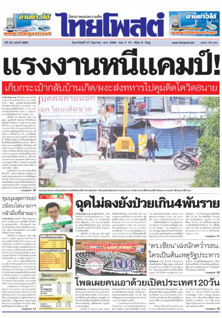 ยอดผู้ติดเชื้อเกิน 4 พันคนอีกครั้ง หลายจังหวัดพุ่งไม่หยุด พบ 7 คลัสเตอร์ใหม่ กระจายใน 5 จว. กทม.ยังวิกฤติต่อไป มีผู้ป่วยถึง 1,276 ราย สภายอมรับ ส.ว.เลิศฤทธิ์ติดโควิดจริง ส่วน ป.ป.ช.วุ่นเจ้าหน้าที่สาวติดเชื้่อจากร้านสักคิ้ว ส่วนสถานการณ์ในคุกดีขึ้น
